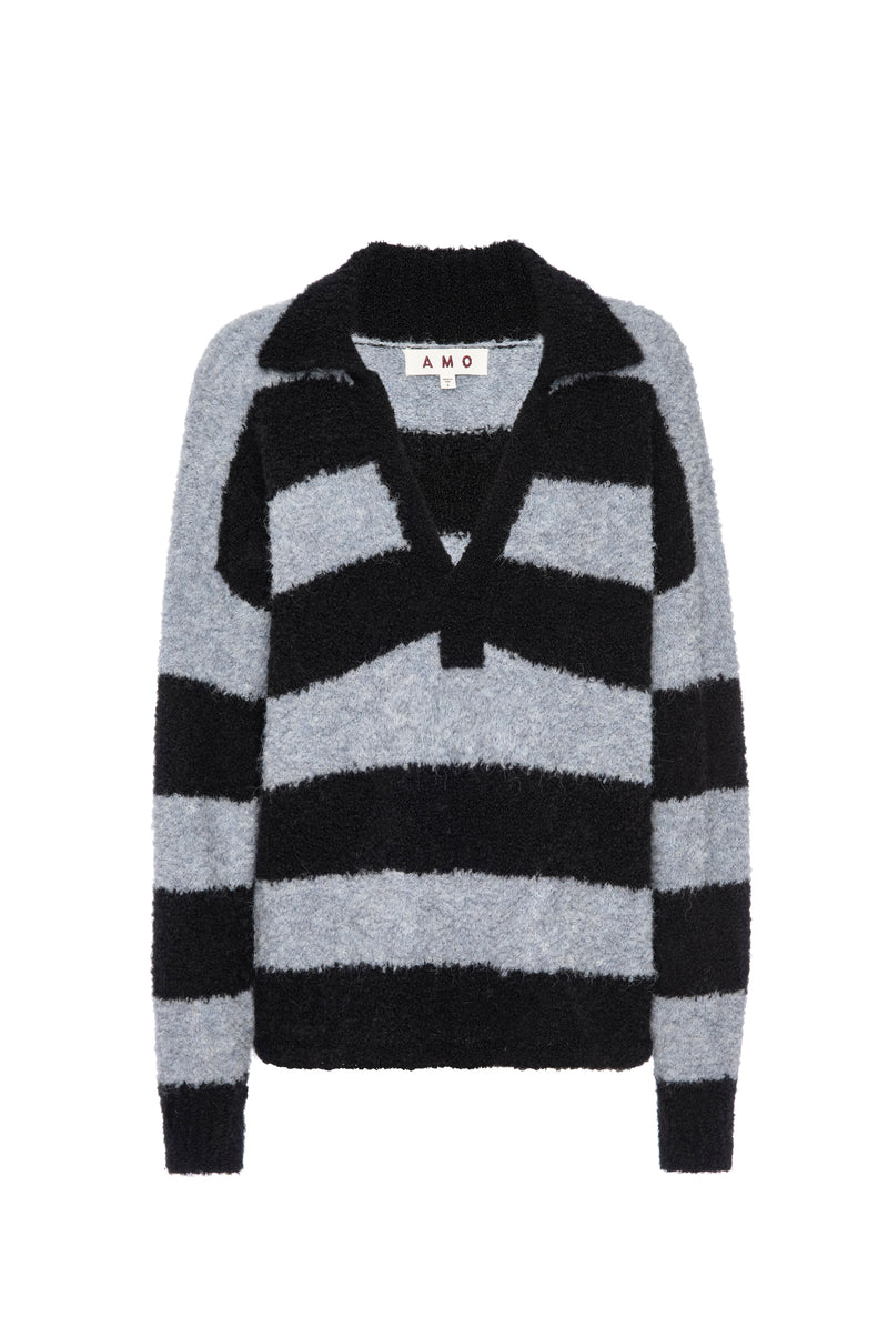 An oversized, dropped shoulder twist on the classic rugby sweater. Crafted from a textured, fine alpaca blend, this striped sweater has a classic, sporty look.