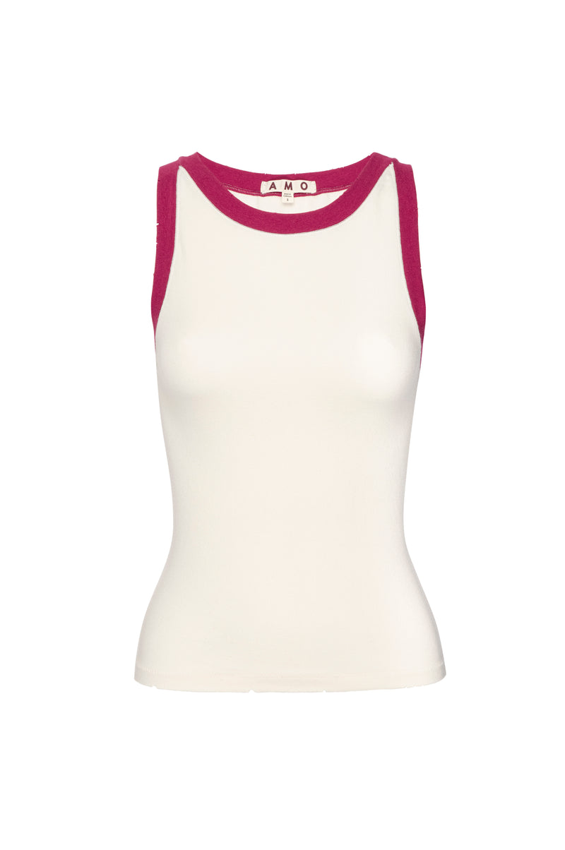 A slim fit ringer tank with contrast trims, inspired by classic athletic wear.