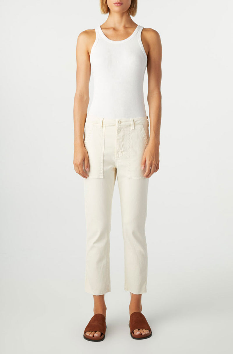 A classic army pant—but cooler and with just the right amount of stretch. Slightly relaxed, cropped straight leg with trouser styling and utilitarian back and front patch style pockets. Just like its name, it's meant to feel easy to wear and effortless to style. Zip fly.