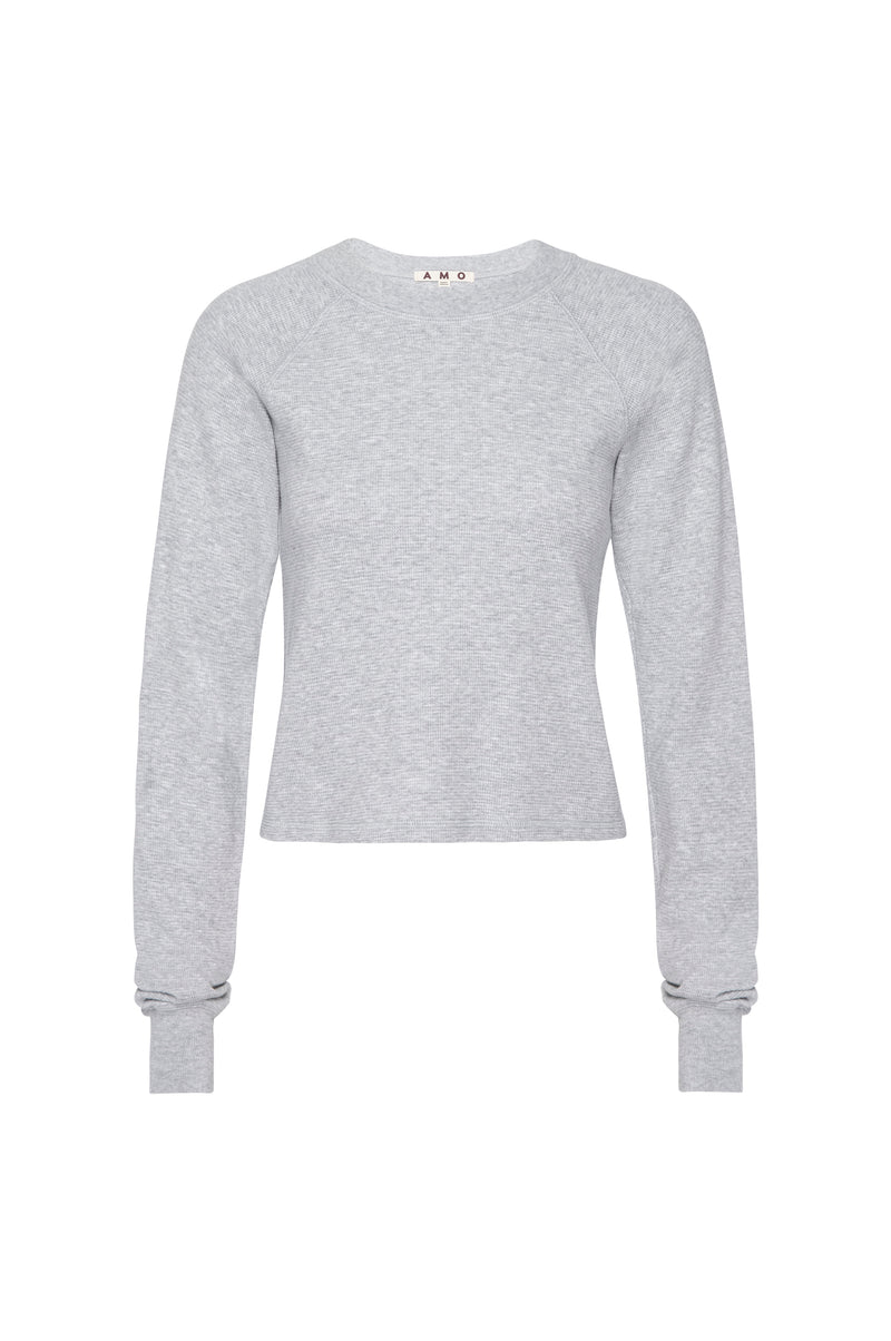 This top combines timeless design with cozy textures, featuring a crew neck, easy fit, long sleeves, and raglan shoulders. Crafted from soft thermal knit, it’s the perfect layering essential for cooler days.