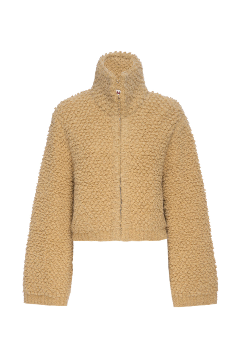 Somewhere between a jacket and a sweater comes this elevated, curly knit-stitch layer that strikes the ideal balance between warmth and style. The cropped length and slightly boxy shape create a modern silhouette that's both chic and comfortable. The hook and eye front closure coupled with the convertible collar add versatility to this piece, allowing you to tailor your look to any occasion.