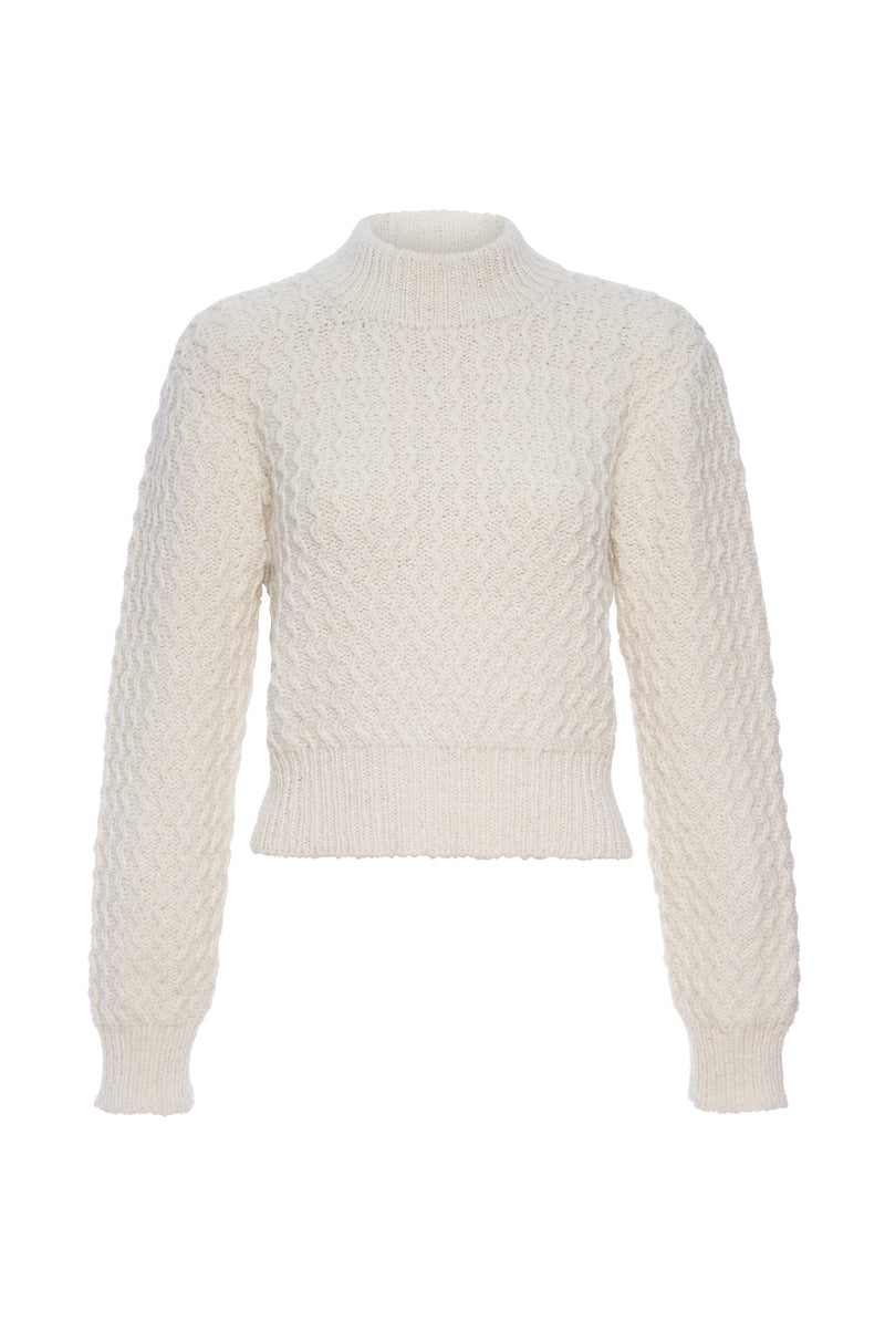 This cropped, shrunken turtleneck's textured detailing is perfectly complemented by the long ribbed cuffs and waistband. Throw it over your shoulders now and wear it alone later.