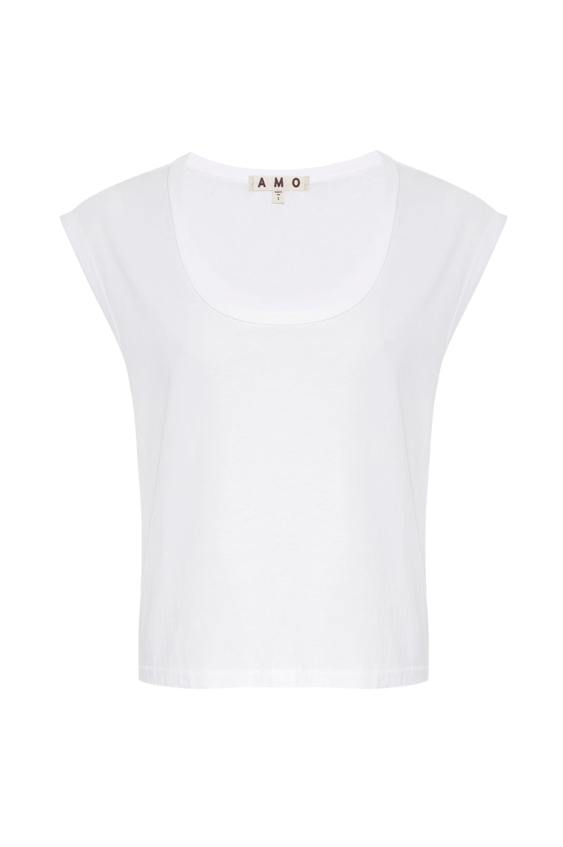 A cap sleeve tee with a scoop neck and trapeze shape. Easy & effortless.