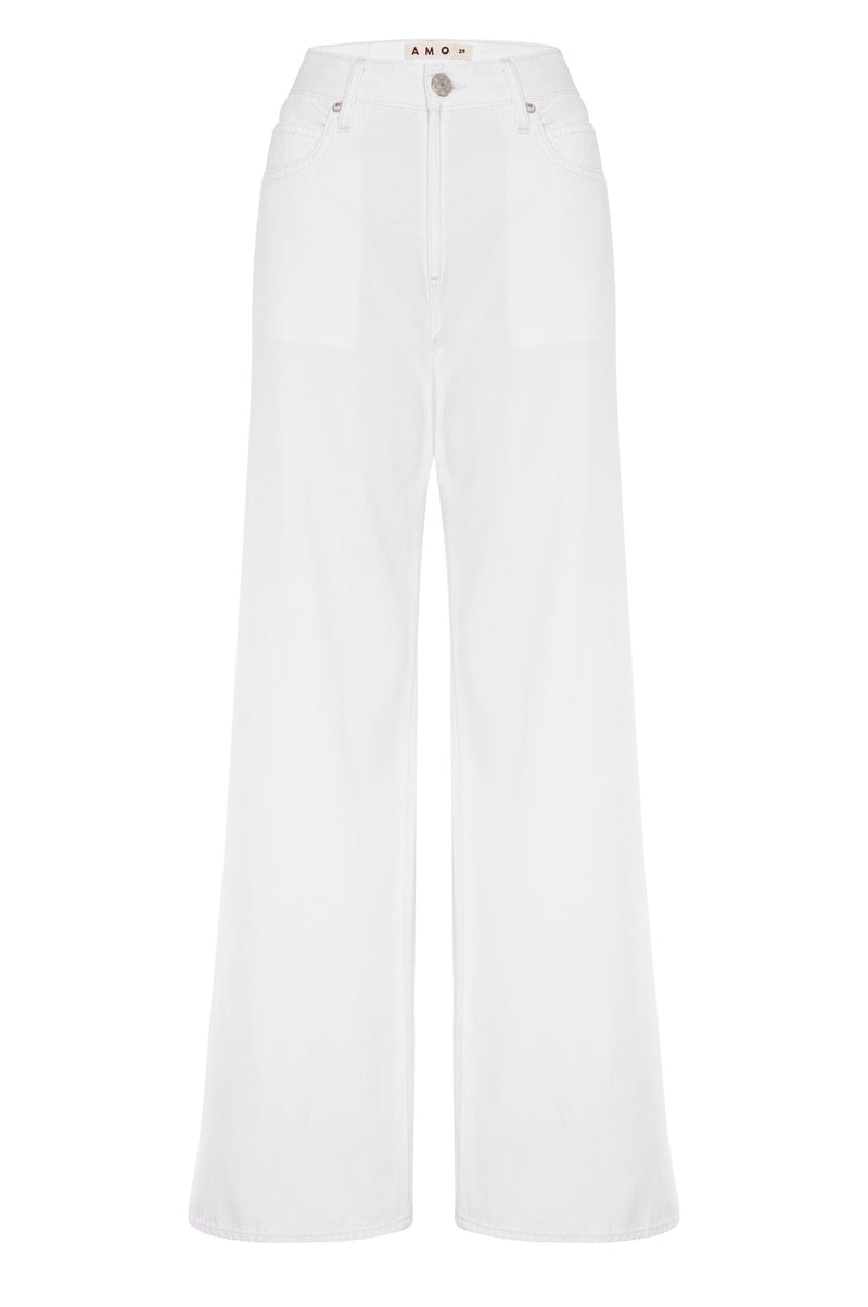 Elevate your style with a mid rise silhouette that strikes the perfect balance between modern and timeless. The wide leg and full dramatic length, combined with premium rigid denim, create an effortless look. Denim hem. Zip fly.