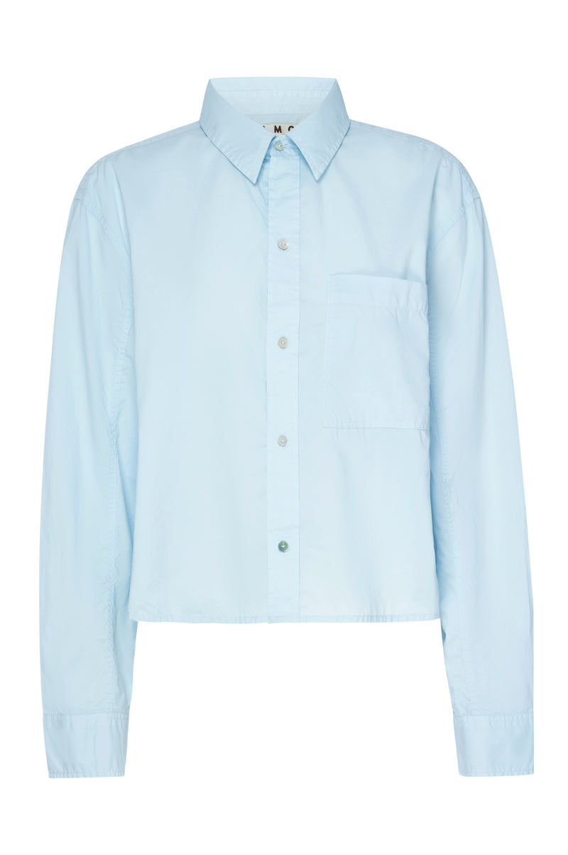 A cropped version of your everyday oversized collared shirt. Features a single chest pocket and shell buttons. Crafted from soft, stonewashed cotton poplin.