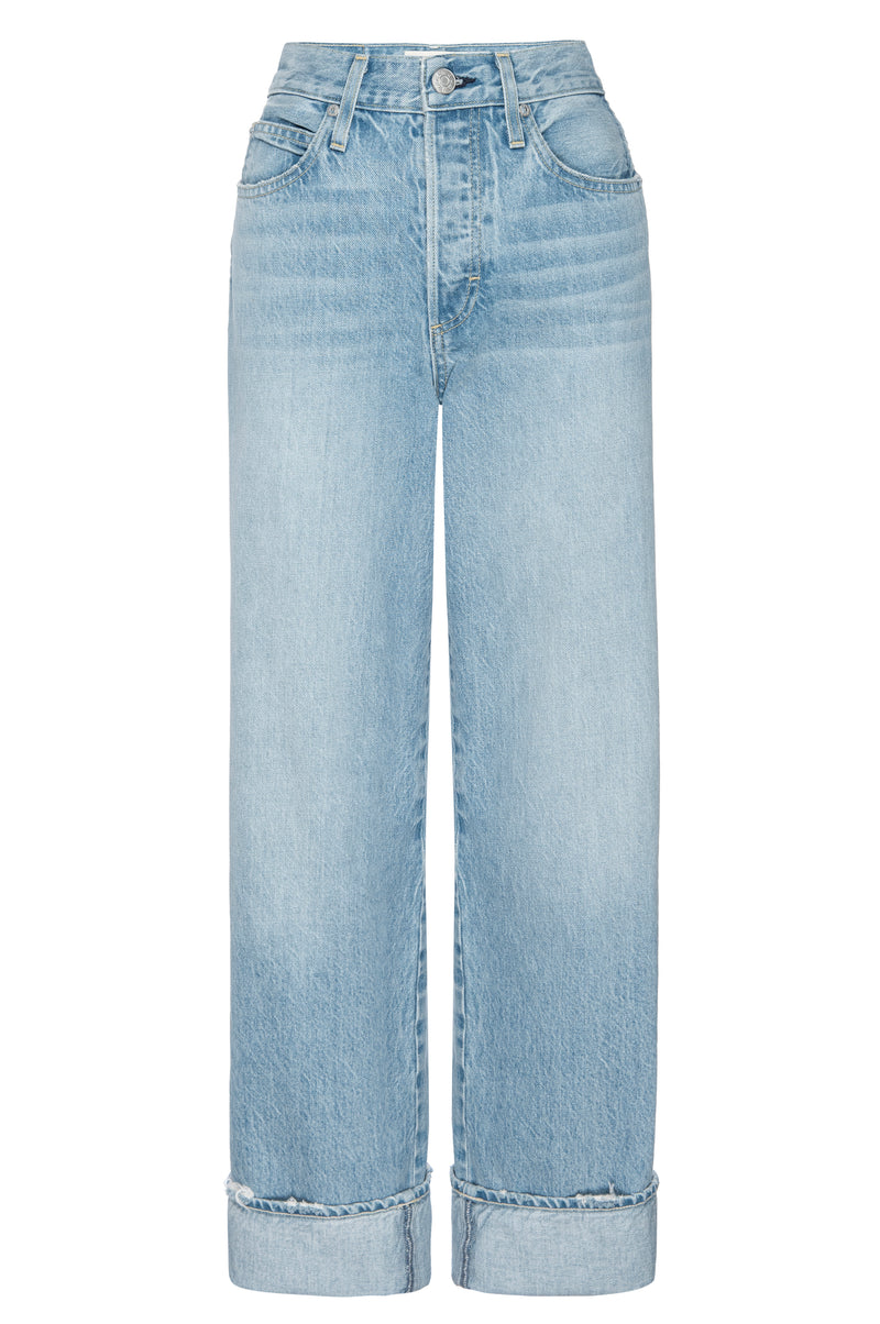 Designed to sit at the high hip, these jeans offer an easy, relaxed fit. The straight leg silhouette with a destructed hem make them perfect to cuff or uncuff (depending on your shoes). Button fly.