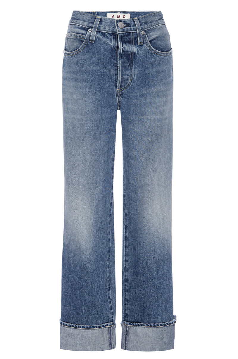 Designed to sit at the high hip, these jeans offer an easy, relaxed fit. The straight leg silhouette with a distressed hem make them perfect to cuff or uncuff (depending on your shoes). Button fly.