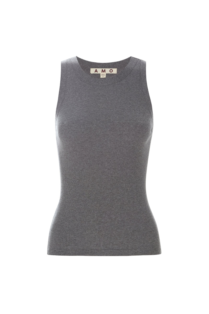 A fitted ribbed racerback tank with a high neckline and cutaway armholes. Crafted in silky cotton for all day wearability, it's intended to be worn alone or styled as a layering piece throughout the year.